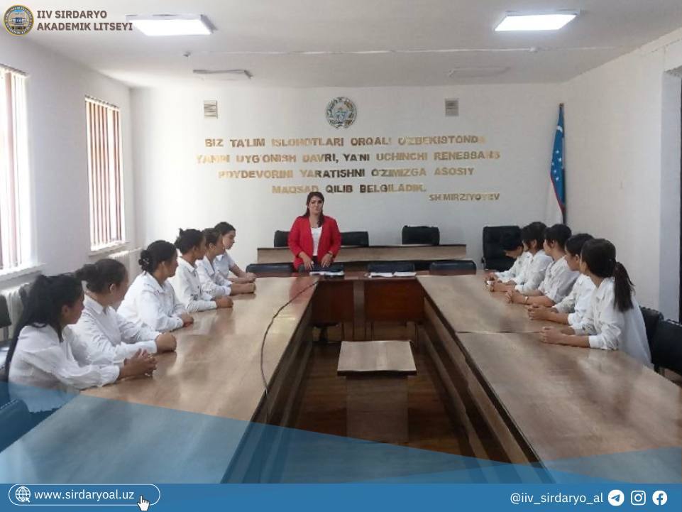 Joriy yilning 13-sentabr kuni “Moslashuv va xavfsiz muhit” oyligi doirasida IIV Sirdaryo akademik litseyida psixolog X.Azizova tomonidan litseyning birinchi bosqich o‘quvchi qizlari uchun psixologik seminar-trening tashkil etildi.