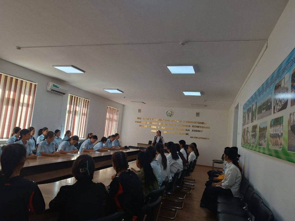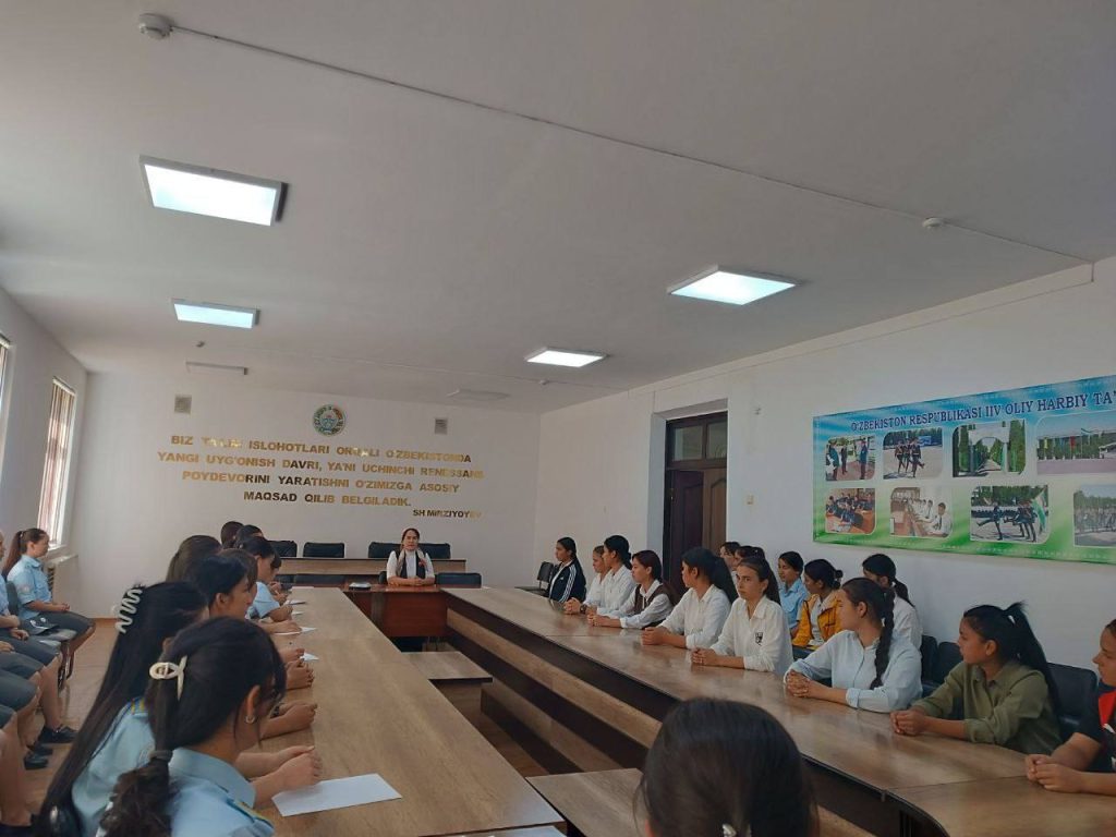 Joriy yilning 24-sentyabr kuni IIV Sirdaryo akademik litseyida o‘quvchi-qizlar ishtirokida muhim tarbiyaviy yig‘ilish bo‘lib o‘tdi. Tadbirni litseyning xotin-qizlar raisi Mamatkulova Nasiba olib bordi.