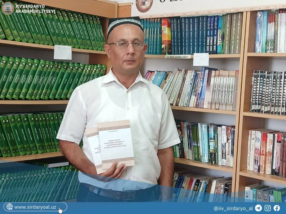 IIV Sirdaryo akademik litseyida Huquqiy va ijtimoiy-gumanitar fanlar kafedrasi boshlig‘i, tarix fanlari nomzodi Qlichev Ulug‘bek Abdumavlonovichning “Tarix fanini o‘qitishda metod va axborotlardan foydalanish yo‘llari” nomli kitobi taqdimoti o‘tkazildi.
