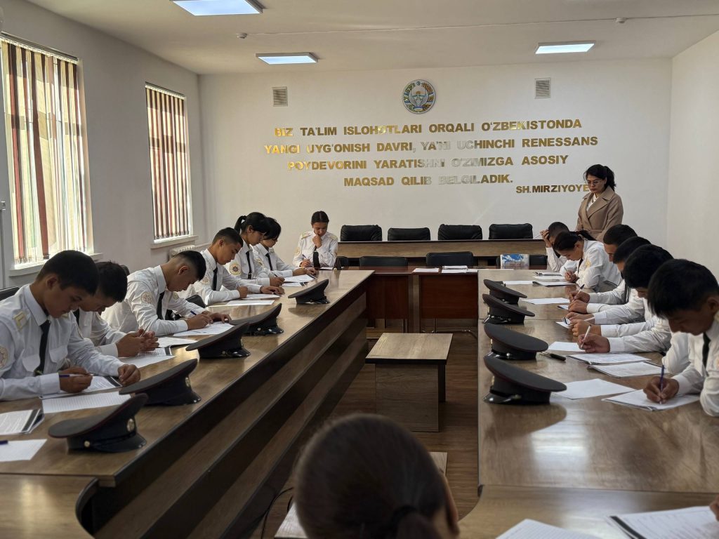Joriy yilning 6-oktyabr sanasida IIV Sirdaryo akademik litseyida “Tillar” kafedrasi mudiri Malika Mansurova tomonidan ona tili va adabiyot fanidan bo‘lib o‘tadigan milliy sertifikat imtihoniga tayyorgarlik ko‘rayotgan o‘quvchilar ishtirokida sinov imtihoni o‘tkazildi.