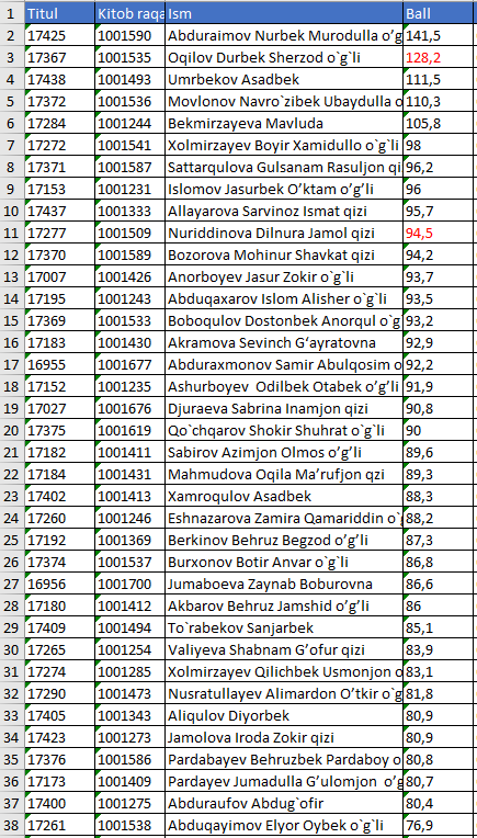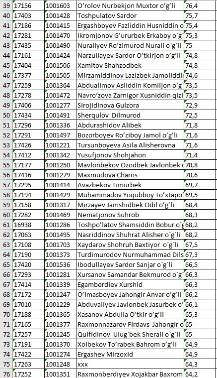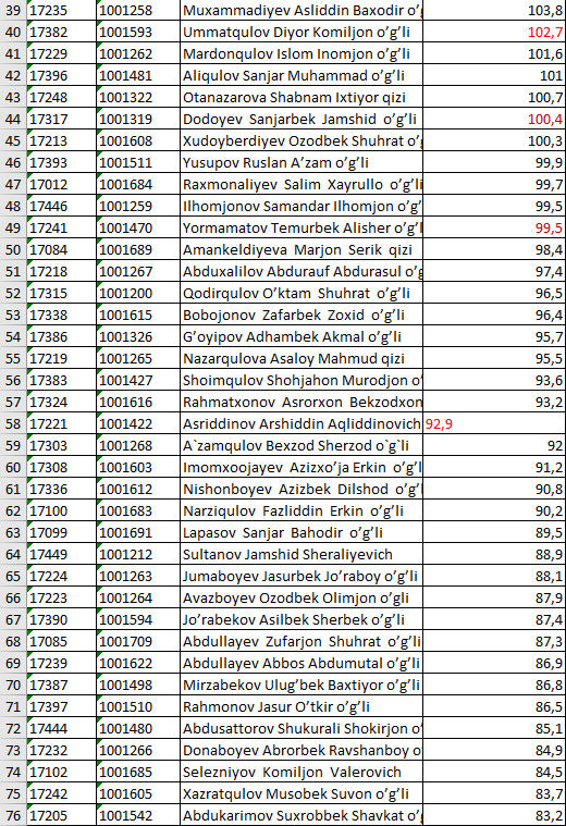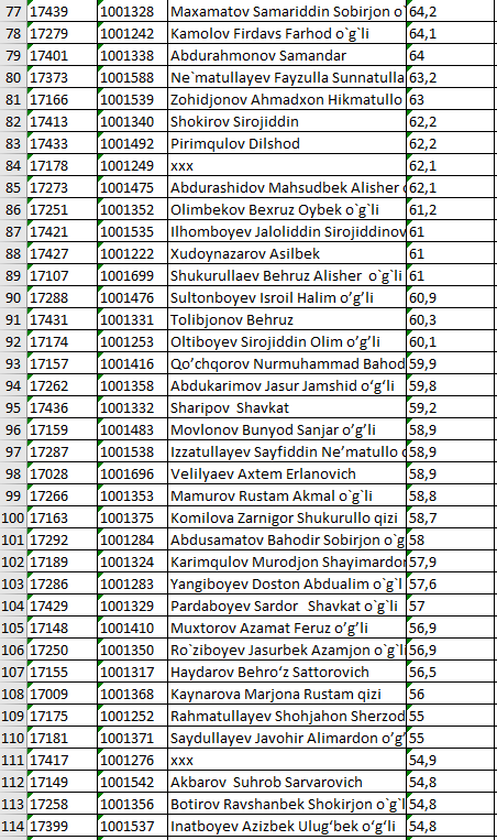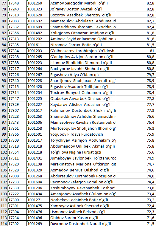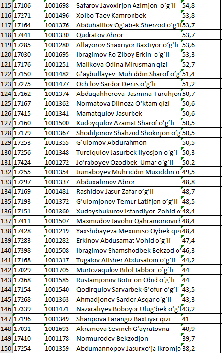 IIV Sirdaryo akademik litseyi o’quvchilarining OTMlarga tayyorgarlik darajasini nazorat qilish maqsadida OKTABR oyida o’tkazilgan sinov test natijalari: