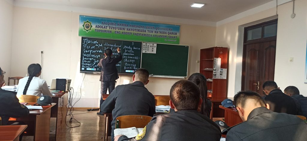 Joriy yilning 11-noyabr kuni IIV Sirdaryo akademik litseyi “Tillar” kafedrasi ingliz tili fani o‘qituvchisi Mirzakulov Elyor tomonidan litseyning 106-guruhida “New York City” mavzusida ochiq dars o‘tkazildi.