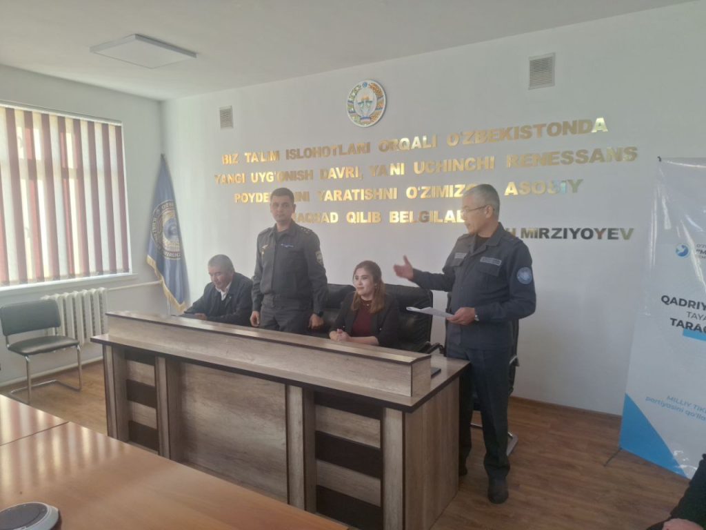 Ular o‘quvchilar va pedagoglar jamoasiga Farmonning mazmun-mohiyati, milliy dastur doirasidagi vazifalar hamda yoshlar o‘rtasida giyohvandlikning oldini olish bo‘yicha amalga oshirilayotgan chora-tadbirlar haqida batafsil ma’lumot berdilar.