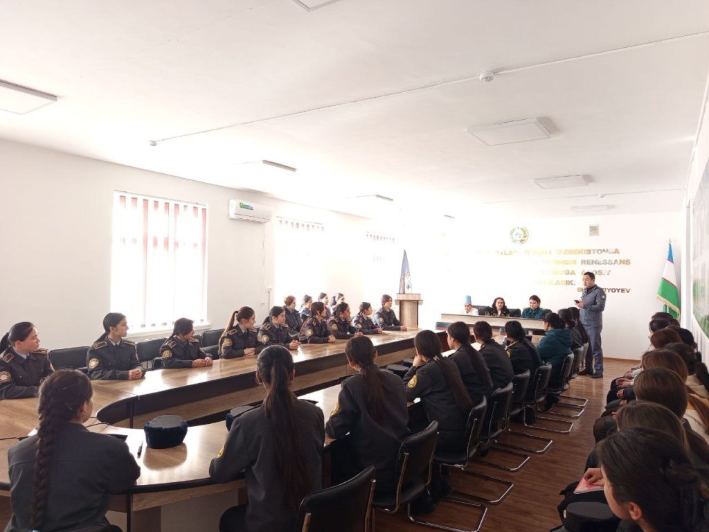 IIV Sirdaryo akademik litseyida “Biz zo‘ravonlikka qarshimiz” mavzusida ma’rifiy davra suhbati o‘tkazildi. Tadbirda Sirdaryo tumani IIB JXX HPBning xotin-qizlar masalalari bo‘yicha katta inspektori, katta leytenant R. Riskulova ishtirok etdi.