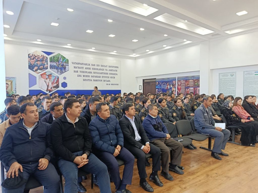 Joriy yilning 28-noyabr kuni IIV Sirdaryo akademik litseyida O‘zbekiston Respublikasi IIV Malaka oshirish instituti boshlig‘i, texnika fanlari nomzodi, professor Axmedov Olimjon Tursunboyevich tomonidan “Jadidchilik harakati” mavzusida ma’naviyat darsi tashkil etildi.