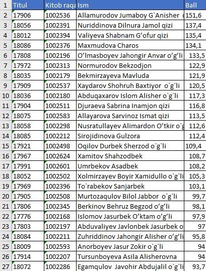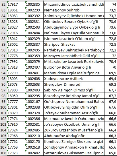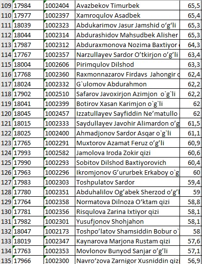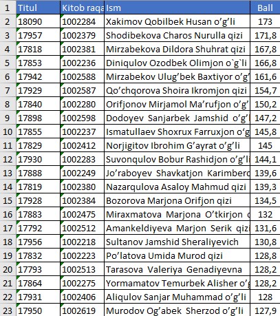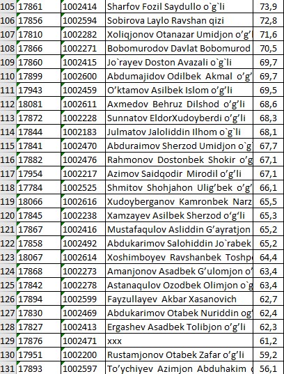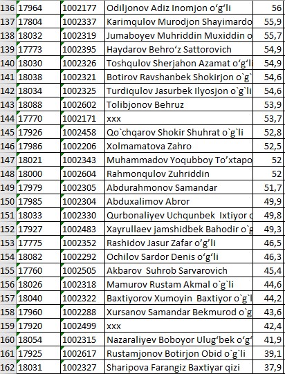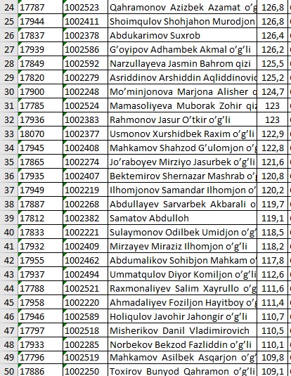II KURS NATIJALARI