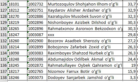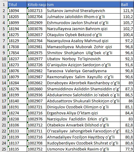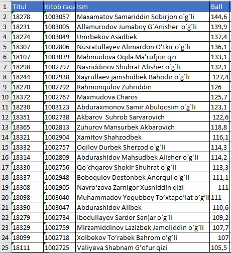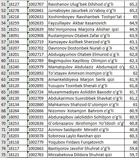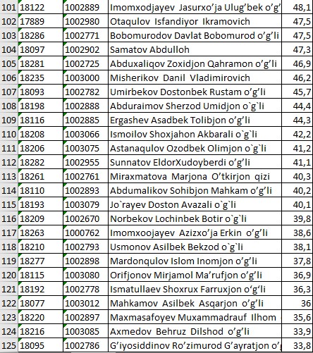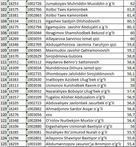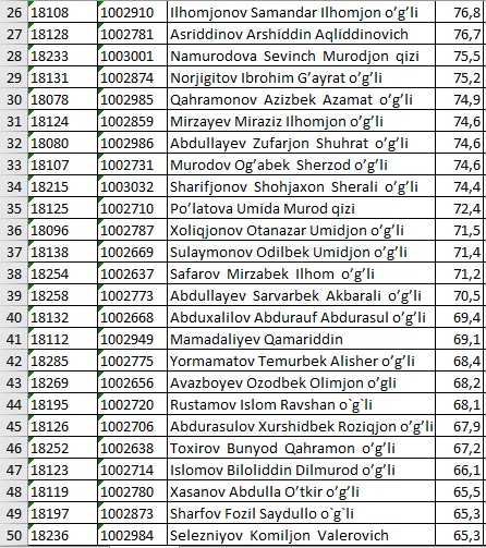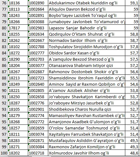 IIV Sirdaryo akademik litseyi o’quvchilarining OTMlarga tayyorgarlik darajasini nazorat qilish maqsadida Yanvar oyida o’tkazilgan sinov test natijalari: