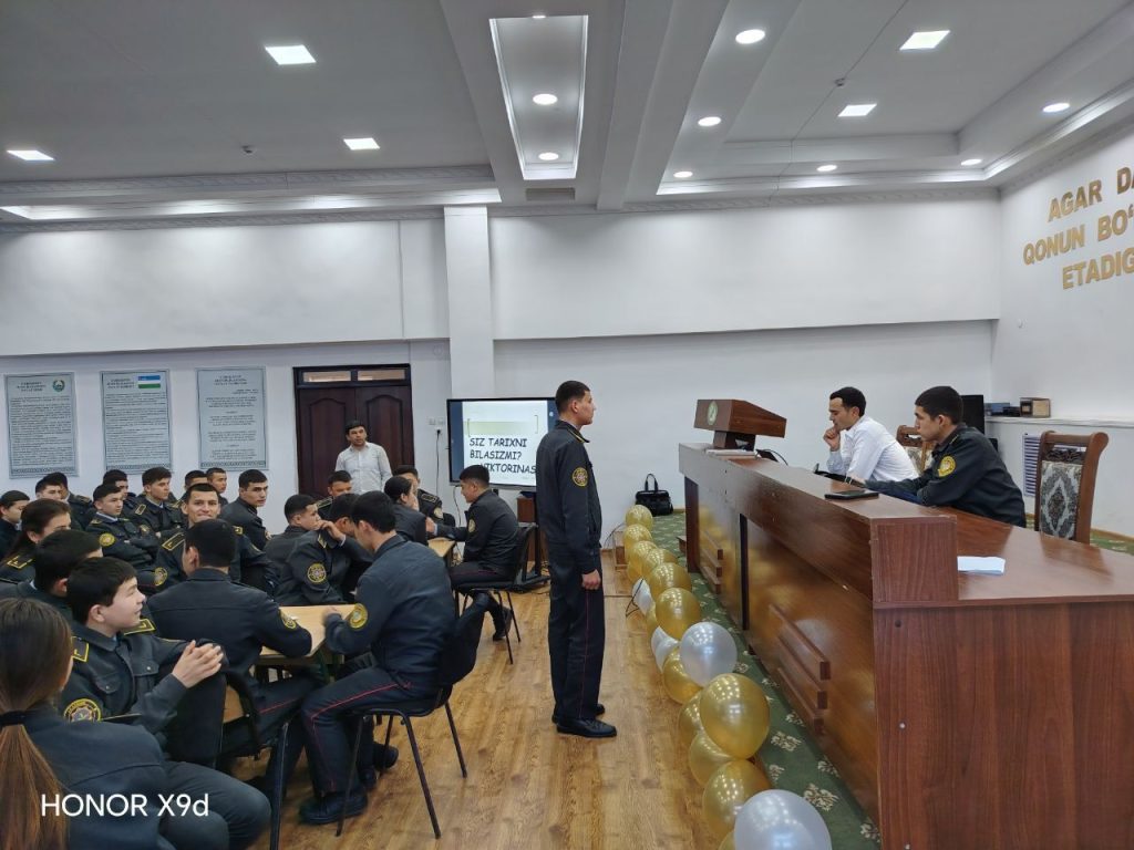 Huquqiy va ijtimoiy-gumanitar fanlar kafedrasi o’qituvchilari tomonidan tarix fani oyligi doirasida akademik litsey o‘quvchilari o‘rtasida bilim va tafakkurni oshirish maqsadida “Tarixni bilasizmi?” nomli viktorina tashkil etildi.
