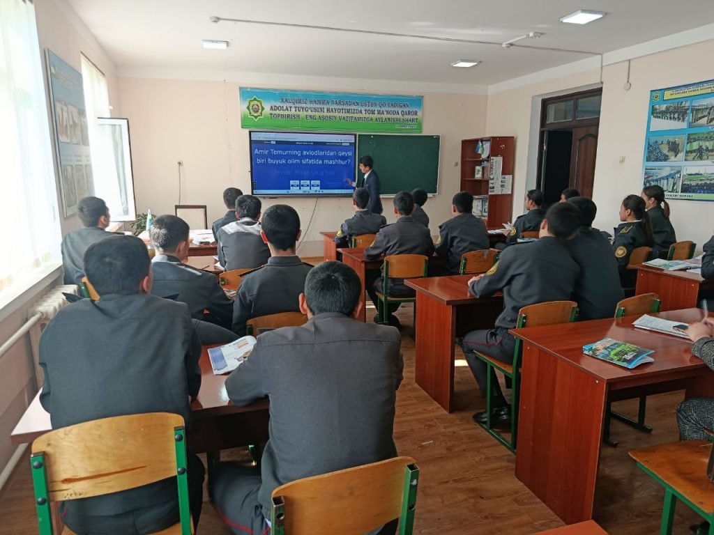 Joriy yilning 17-fevral sanasida IIV Sirdaryo akademik litseyida tarix fani o‘qituvchisi Abduvaliyev Diyorbek tomonidan 101-guruh o‘quvchilari uchun “Amir Temur davlatining boshqaruvi” mavzusida ochiq dars mashg‘uloti o‘tkazildi. 🏛📖