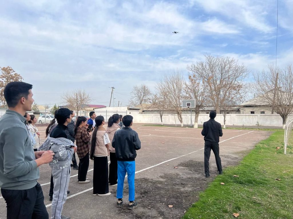 Tadbirning amaliy qismi ham qiziqarli tashkil etildi. Unda o‘quvchilarga dron qurilmasining tuzilishi, ishlash prinsipi va boshqarish asoslari tushuntirildi. Ishtirokchilar dronni boshqarish jarayonini bevosita kuzatib, zamonaviy texnologiyalarning ichki ishlar tizimidagi ahamiyati haqida muhim ma’lumotlarga ega bo‘lishdi.