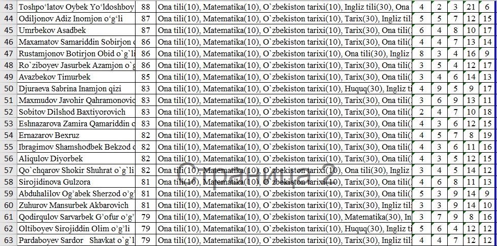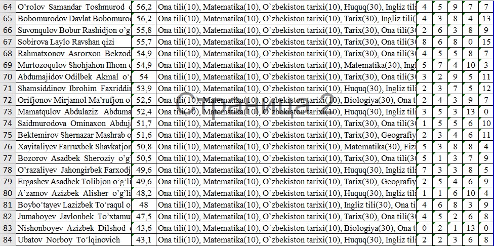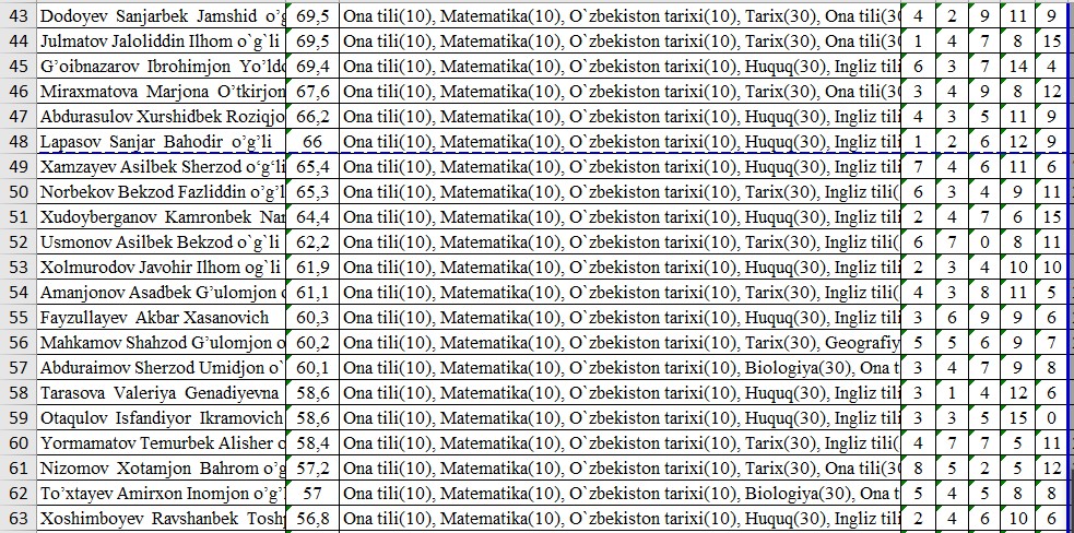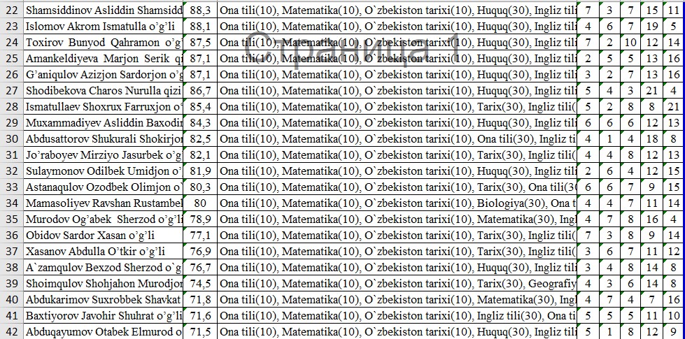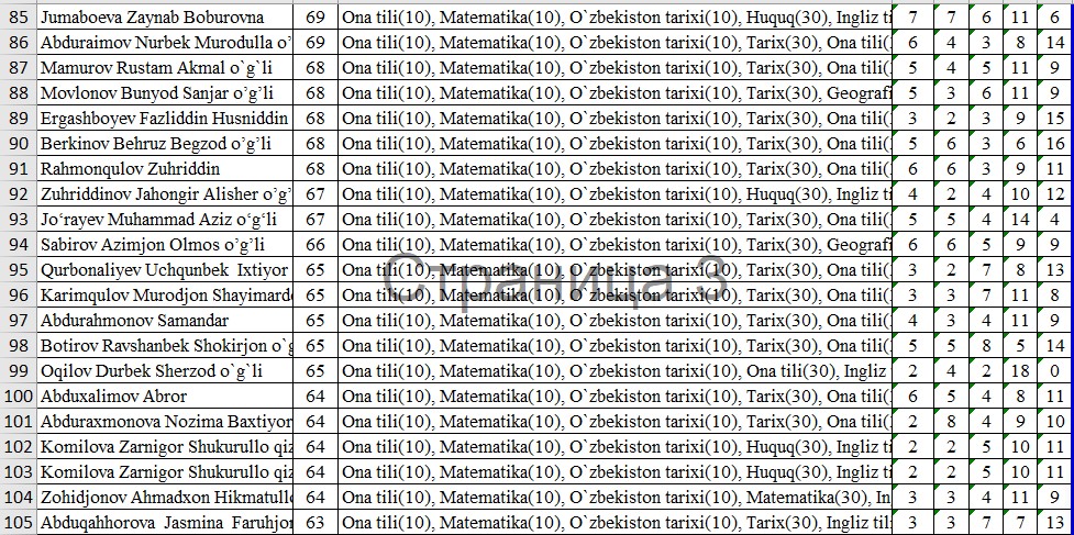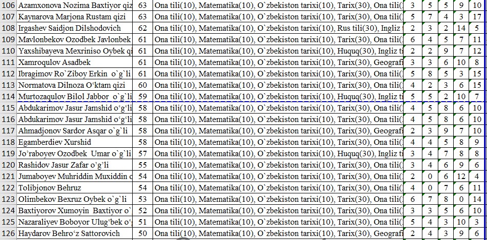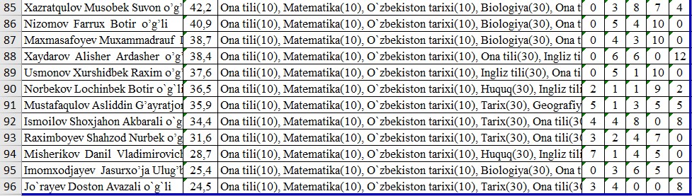 IIV Sirdaryo akademik litseyi o’quvchilarining OTMlarga tayyorgarlik darajasini nazorat qilish maqsadida FEVRAL oyida o’tkazilgan sinov test natijalari bilan tanishib chiqishingiz mumkin: