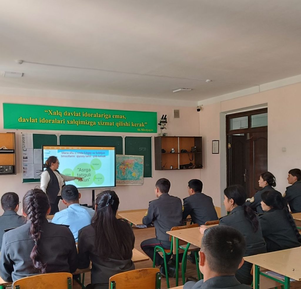 🧠 O‘quvchilar adibning “Asrga tatigulik kun”, “Qiyomat” va “Oq kema” asarlaridagi qahramonlar misolida vijdon, mas’uliyat, insoniylik va tabiatga munosabat kabi muhim falsafiy g‘oyalarni tahlil qildilar.